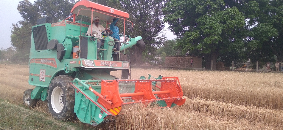 हार्वेस्टर मशीन से कट रही गेंहू की फसल। जागरण