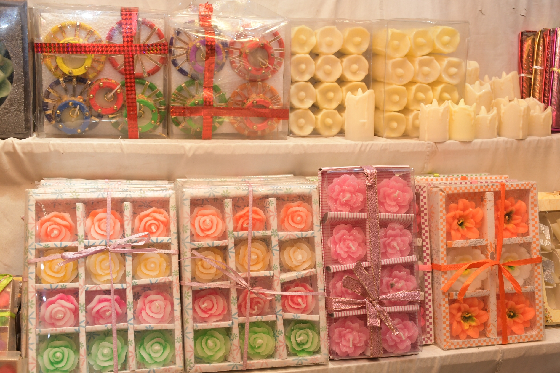अर्दली बाजार में बिक रहा पहली बार गुलाब के फूल वाला कैंडल। जागरण