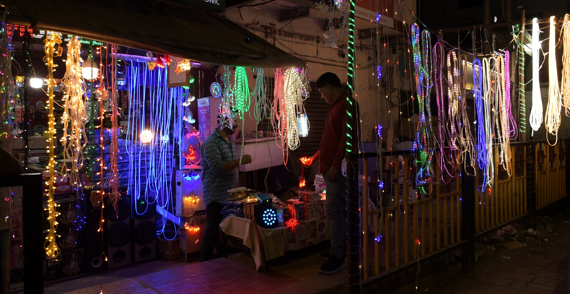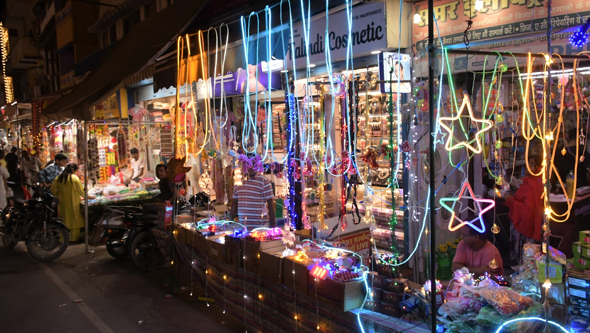 शिवपुर बाजार में बैटरी वाले दीए व कैंडल। जागरण