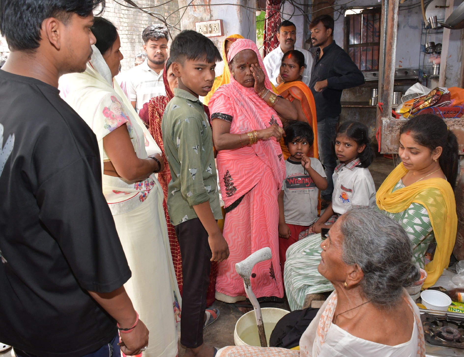 भोजूबीर सरसौली वार्ड सब्जीमंडी के पास एक मकान में कपड़ा सुखने के लिए बांधे गए जीआई तार और टूल्लु का केबल आपस में सटा था, जिसमें उतरे करंट ने तीन लोगो की जान ले लिया। परिवार में बची बुढ़ी दादी व बच्चियों को सांत्वना देते लोग। जागरण
