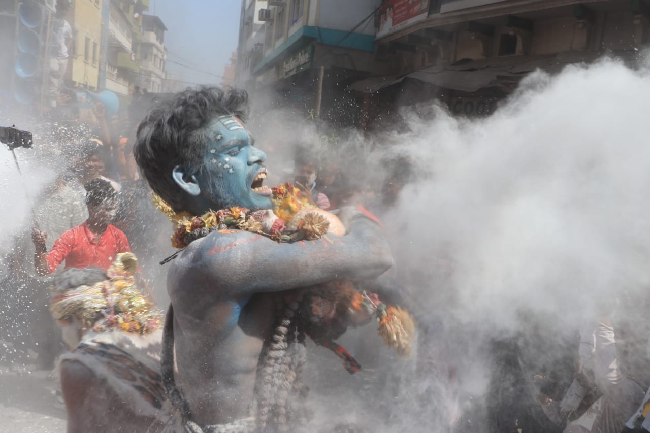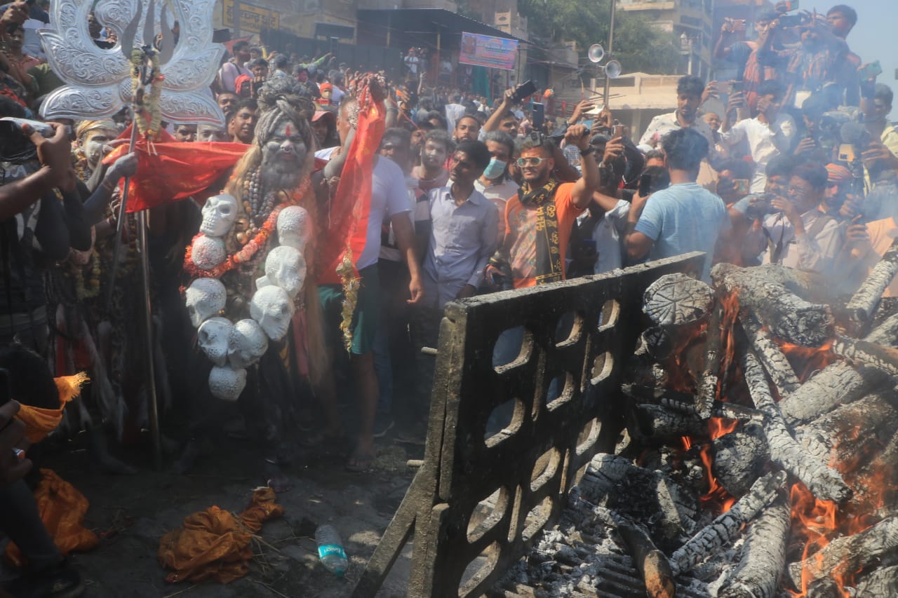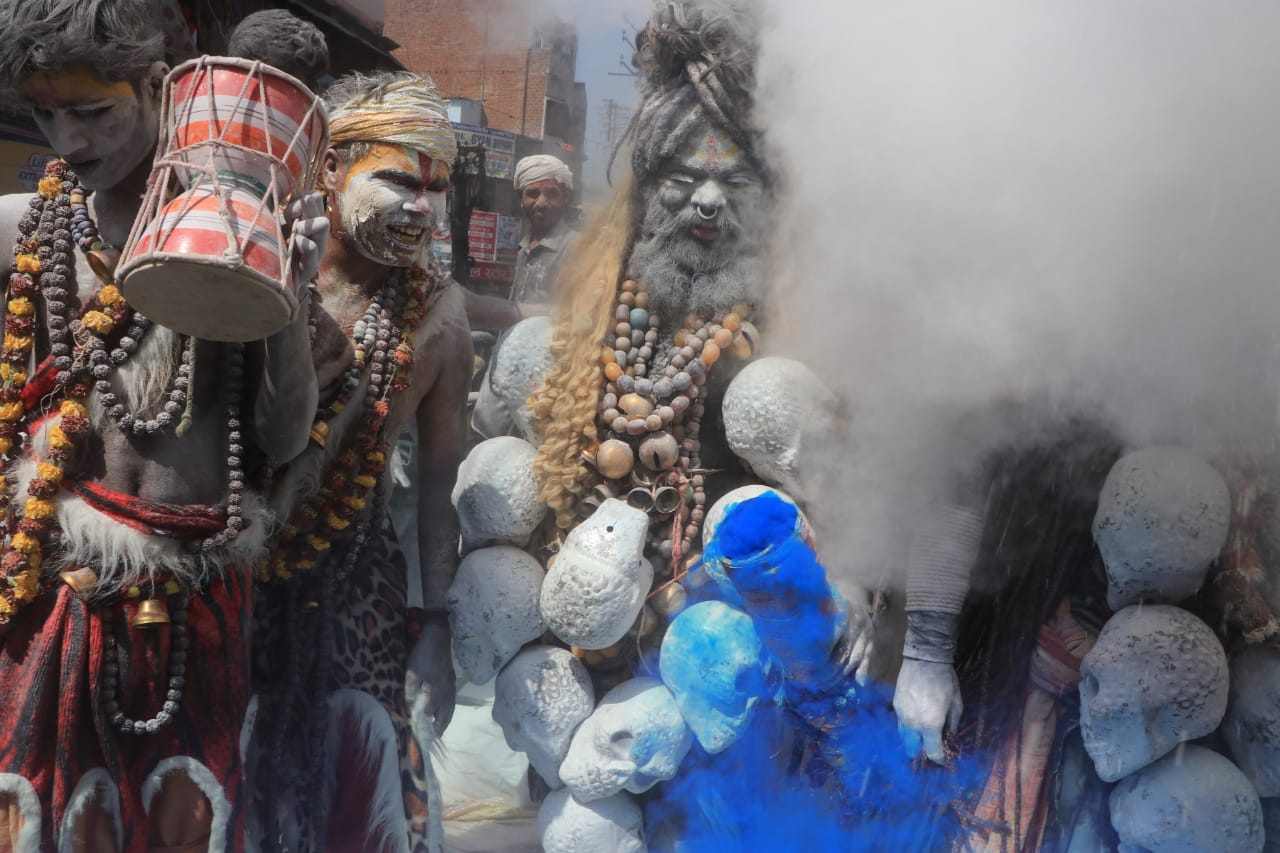 चिता भस्म की होली : शिव के नीलकंठ और मशाननाथ के स्वरूपों का स्वांग धुआं और चिता भस्म के गर्दोगुबार के बीच उल्लास में डूबा तो फिजा में हर हर महादेव का उद्घोष भी गूंज उठा।