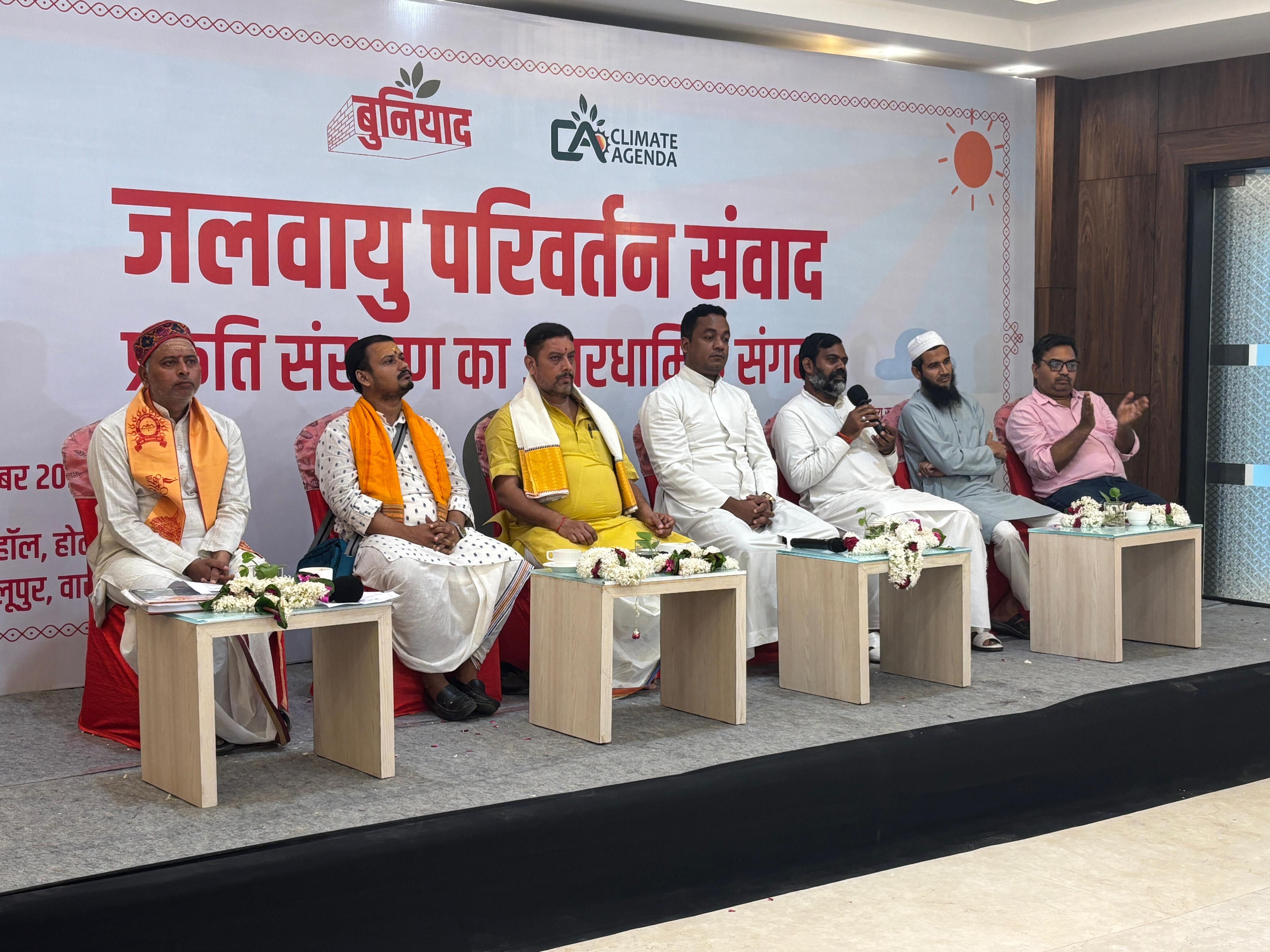 वाराणसी में जलवायु परिवर्तन पर एक अंतरधार्मिक संवाद आयोजित किया गया जिसमें उत्तर प्रदेश की जलवायु चुनौतियों पर ध्यान केंद्रित किया गया। ईंट भट्ठा क्षेत्र में स्वच्छ तकनीक अपनाने आजीविका सुनिश्चित करने और श्रमिकों को सम्मान दिलाने की आवश्यकता पर जोर दिया गया। बुनियाद समर्थन याचिका पत्र की शुरुआत की गई जिसमें न्याय-आधारित बदलाव की मांगें शामिल हैं।