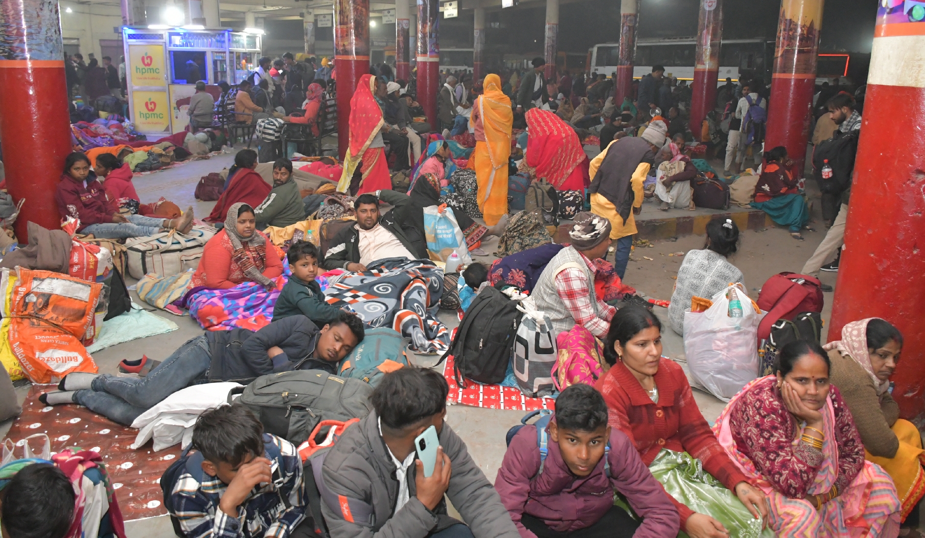 पलट प्रवाह: कैंट रोडवेज पर बस के इंतजार में यात्री। जागरण