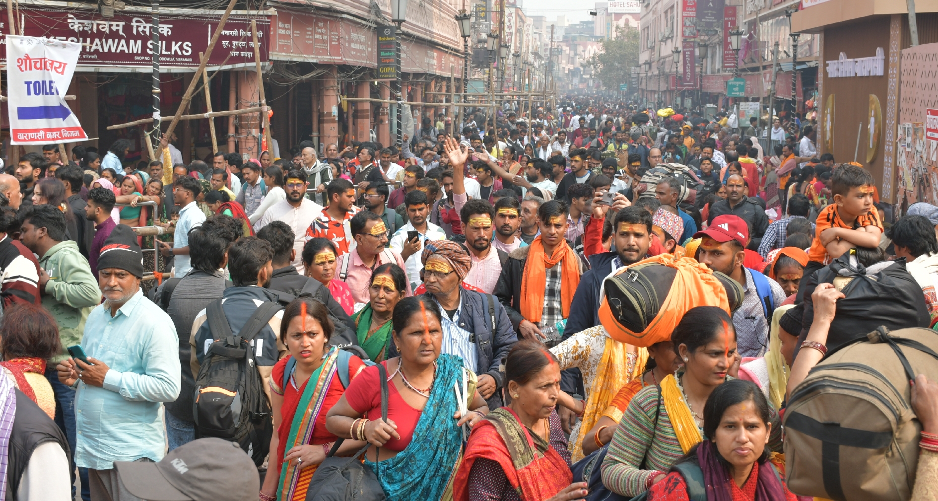कुंभ स्नान के बाद श्रीकाशी विश्वनाथ धाम दर्शन पूजन करने उमड़े भक्त। गोदौलिया से दशाश्वमेध रोड जाम, किया गया वन वे। -नवनीत रत्न पाठक