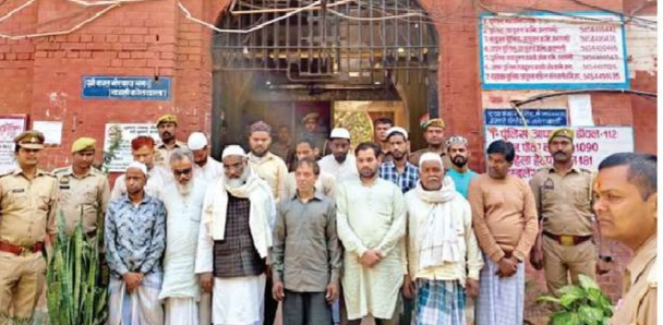 कोतवाली थाने के बाहर खड़े आरोपित। जागरण