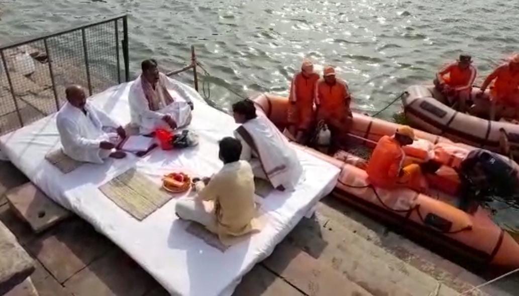 वैदिक रीति रिवाजों से किया अनुष्ठान : प्रविंद जगन्नाथ के आगमन के पूर्व ही चार वेद पाठी ब्राह्मणों ने वैदिक रीति रिवाजों से अनुष्ठान पूरा कराया। इस दौरान गंगा में सुरक्षा के लिए एनडीआरएफ और जल पुलिस की तैनाती रही। जबकि दूसरी ओर दशाश्वमेधघाट पर सुबह से ही सुरक्षा बलों ने संबंधित क्षेत्र को कब्जे में ले लिया। कब्जे में लेने के बाद सघन जांच की गई और लोगों का आवागमन प्रतिबंधित कर दिया गया। इसके बाद सुबह दस बजे प्रविंद जगन्नाथ और उनके परिवार के लोग घाट पर पहुंचे और परंपराओं का निर्वहन करते हुए घाट पर अस्थि कलश विसर्जित करने की परंपरा का निर्वहन किया।