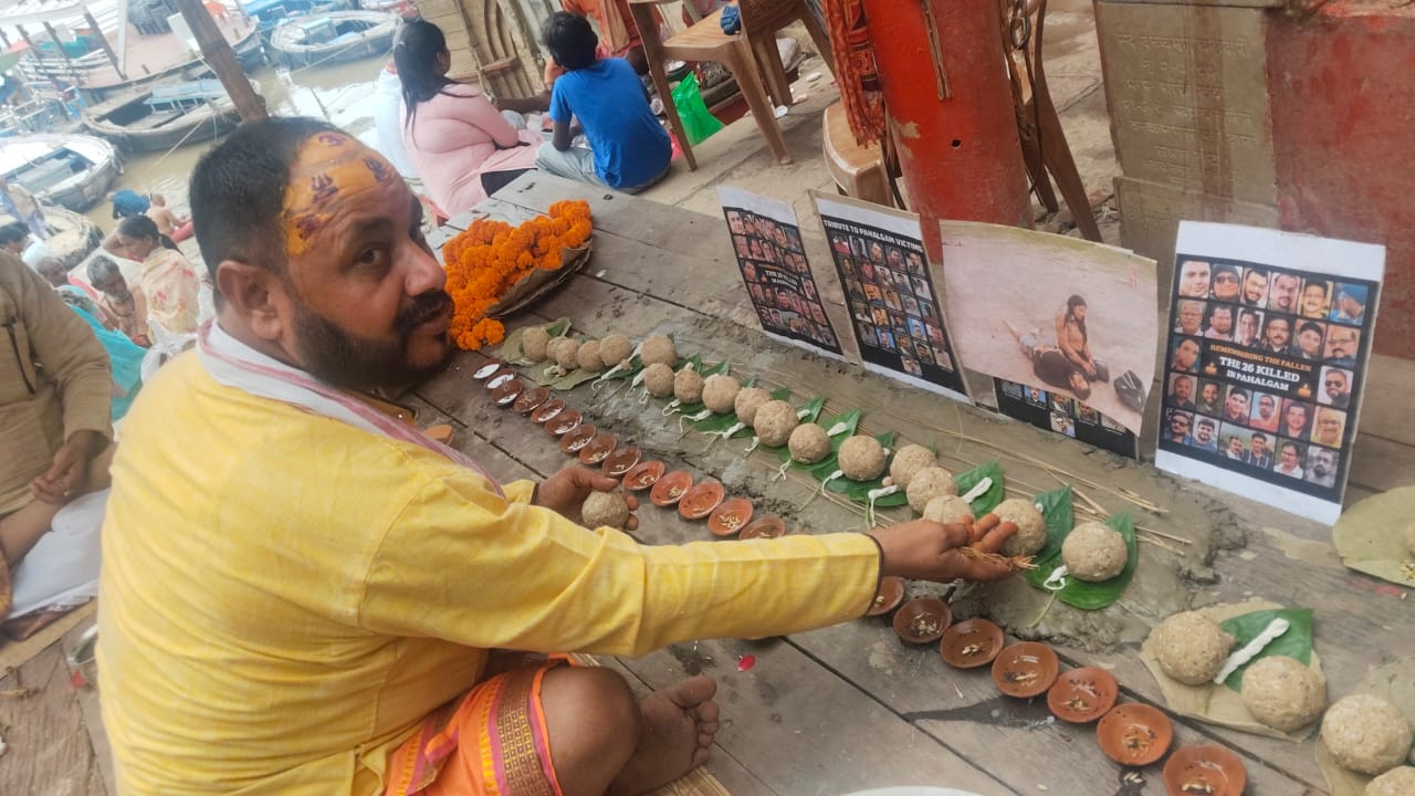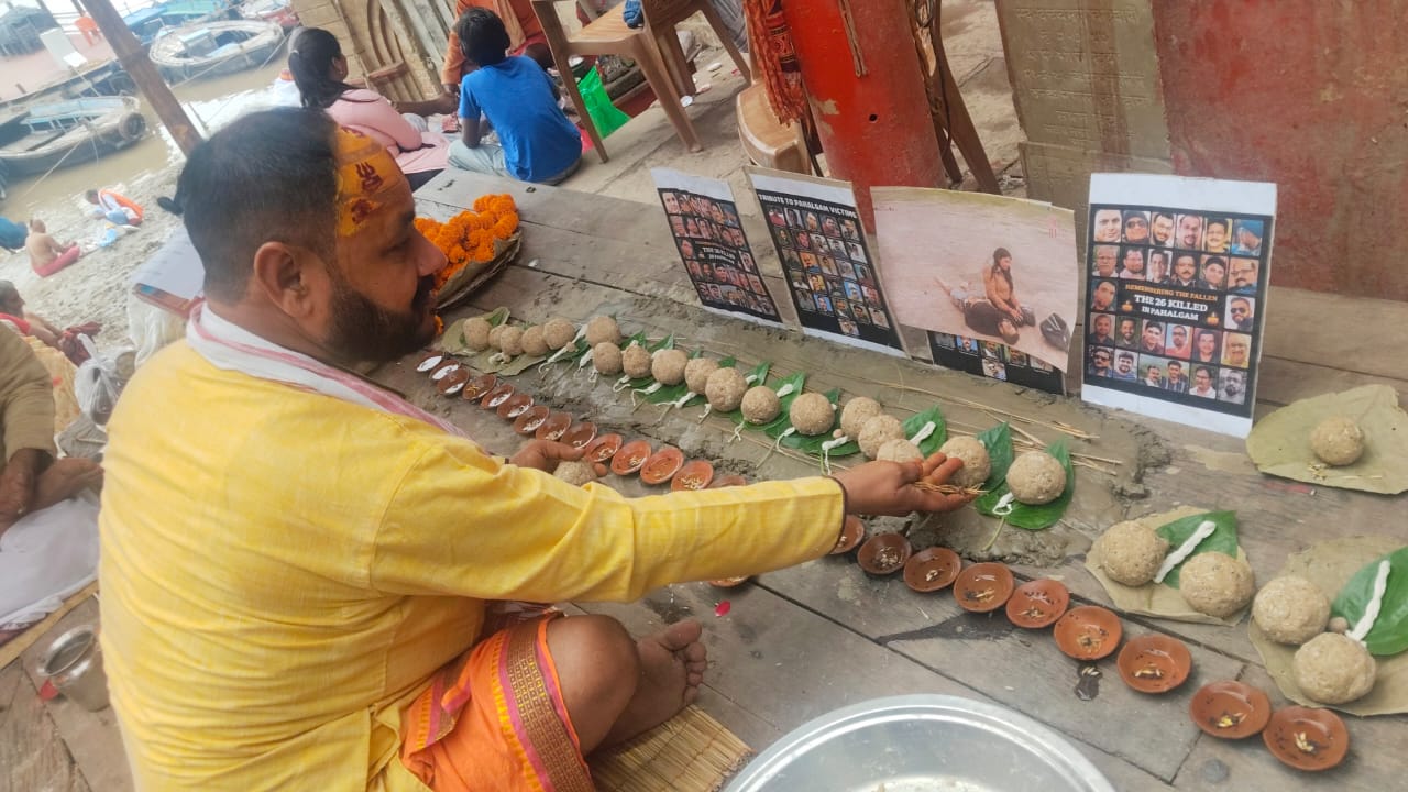 वाराणसी के दशाश्वमेध गंगा घाट पर गंगोत्री सेवा समिति ने पहलगाम आतंकी हमले में मारे गए 26 मृतकों की आत्मा की शांति के लिए विशेष तर्पण और श्राद्ध अनुष्ठान किया। समिति के अध्यक्ष किशोरी रमण दूबे ने वैदिक रीति से अनुष्ठान का नेतृत्व किया जिसमें पिंडदान और मंत्रोच्चार शामिल थे।