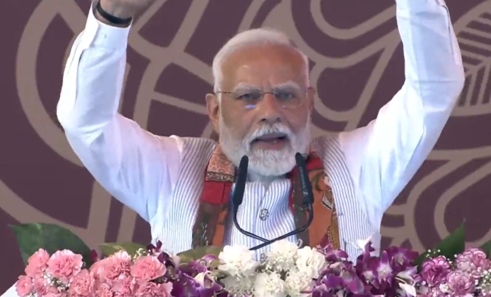 हर-हर महादेव का उद्घोष करते पीएम मोदी। वीडियो ग्रैब।