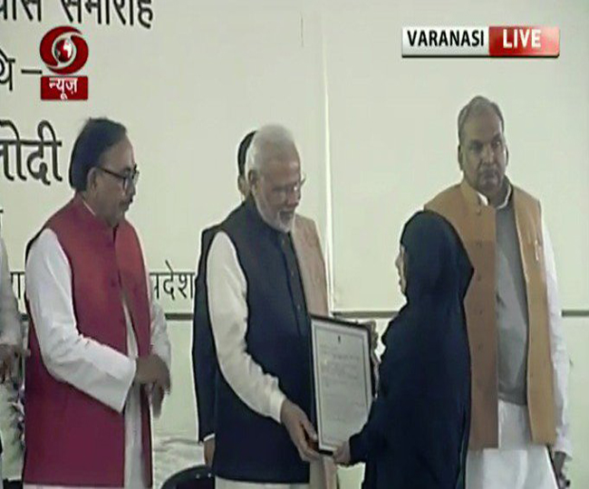 प्रधानमंत्री ने डीरेका परिसर में आयोजित कार्यक्रम के दौरान पांच शिल्पकारों को पहचान पत्र वितरित कर सम्मानित किया। हथकरघा बुनकरों के संवर्धन सहायता के तहत पांच सौ बुनकरों के लिए बुनकर सेवा केंद्र के क्रम में पांच बुनकरों को पीएम के हाथों सहायता प्रदान कर शुरुआत की गई। इसके अलावा कालीन बुनकराें को 20 हजार करघा वितरण के क्रम में वाराणसी, भदोही और मीरजापुर के लिए करघा भी पांच कारीगरों को किया गया। वहीं बीआरएस हेल्थ व रिसर्च इंस्टीटयूट का शिलान्यास किया गया। नेहरु युवा केंद्र को प्रोत्साहन के लिए पीएम ने खिलाडियाें को स्पोटर्स किट का वितरण भी किया।