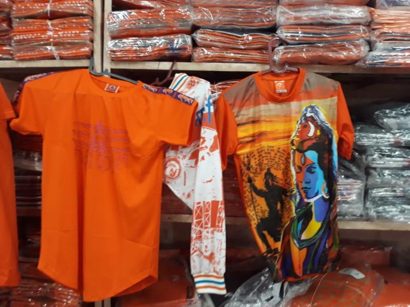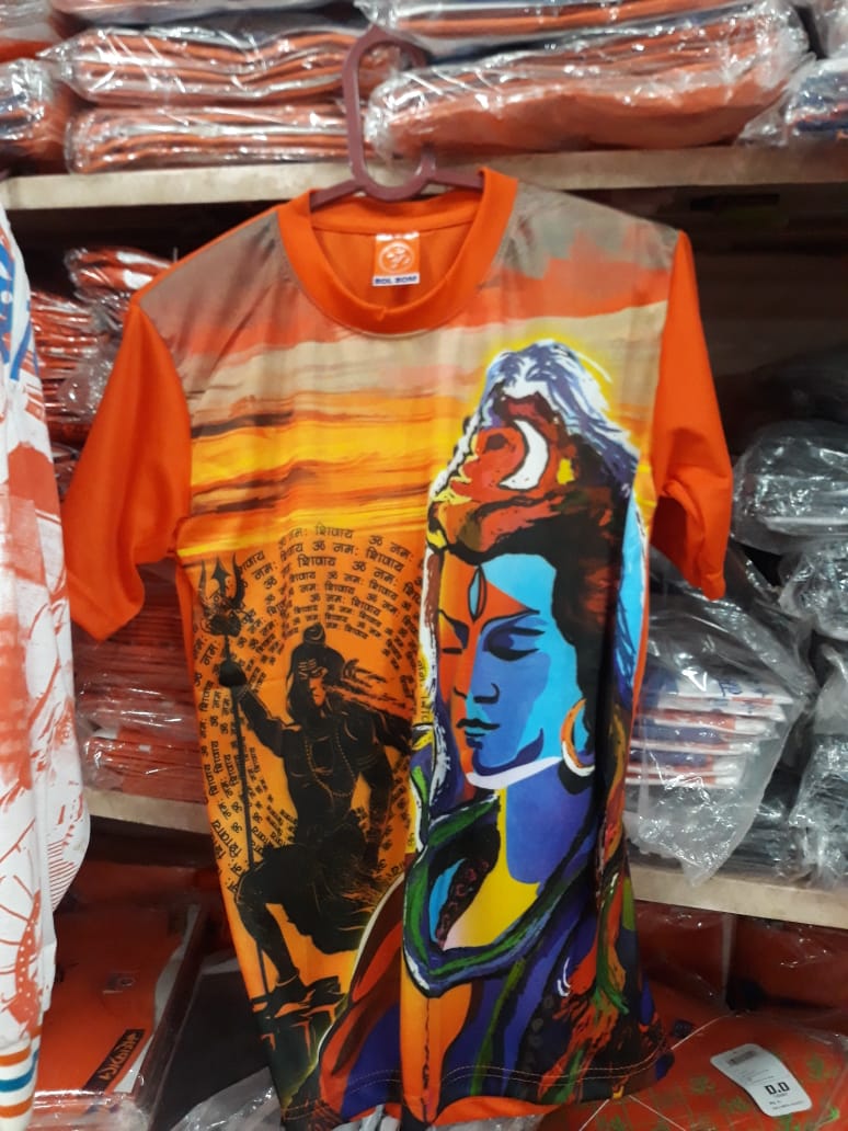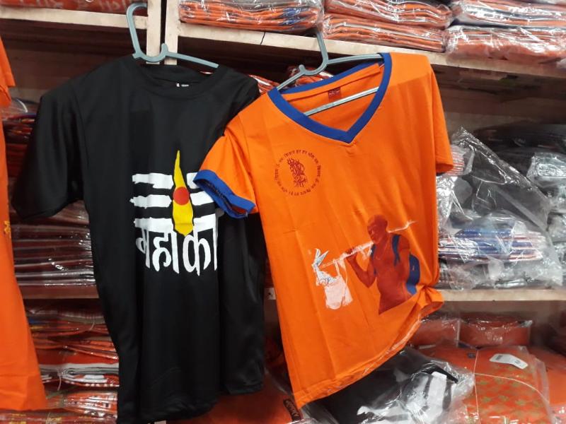 राजादरवाजा में कांवरियों के कपड़ों के थोक व्यापारी संदीप केशरी बताते हैं कांवर उठाए मोदी जी के चित्र वाली टीशर्ट की तो धूम मची हुई है। इस बार केवल नारंगी रंग ही नहीं बल्कि काले, सफेद और रॉयल ब्लू कलर के टीशर्ट पर महाकाल, अपना टाइम आएगा, नो थ्री नो फोर जी ओनली शिवजी सहित चिलम बाबा के चित्र वाले टीशर्ट की डिमांड बढ़ गई है। इसके अलावा डैमेज टीशर्ट जिसमें कपड़ों में कटिंग करके स्लोगन लिखे हैं जिसमें ऊं नम: शिवाय, महाकाल आदि लिखा है।