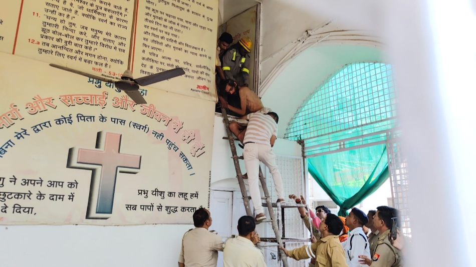 गिरजाघर चौराहा स्थित चर्च के ऊपर चढ़े विदेशी नागरिक को किसी तरह समझा बुझाकर पुलिस ने नीचे उतारा। जागरण
