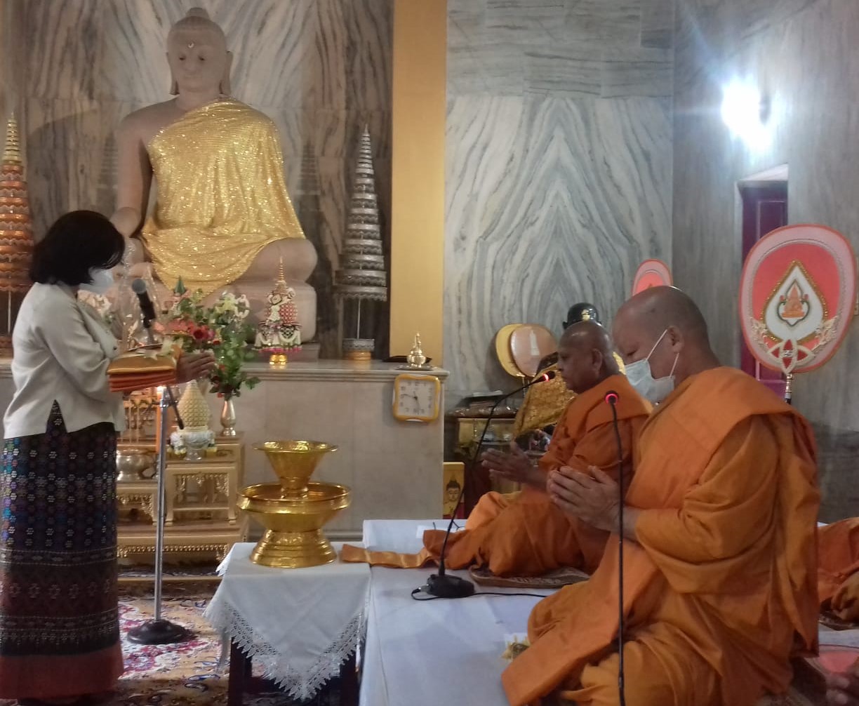 थाईलैंड की राजदूत पट्टारत होंगटोंग ने 19 सदस्यीय दल के साथ थाई बौद्ध मंदिर में सुबह 9.30 बजे भगवान बुद्ध की प्रतिमा के समक्ष दीप जला कर थाई मन्त्रोच्चारण के साथ कोरोना मुक्ति के लिए पूजा की। यह पूजा थाई मन्दिर के प्रभारी भिक्षु मंगलिको ने कराया।