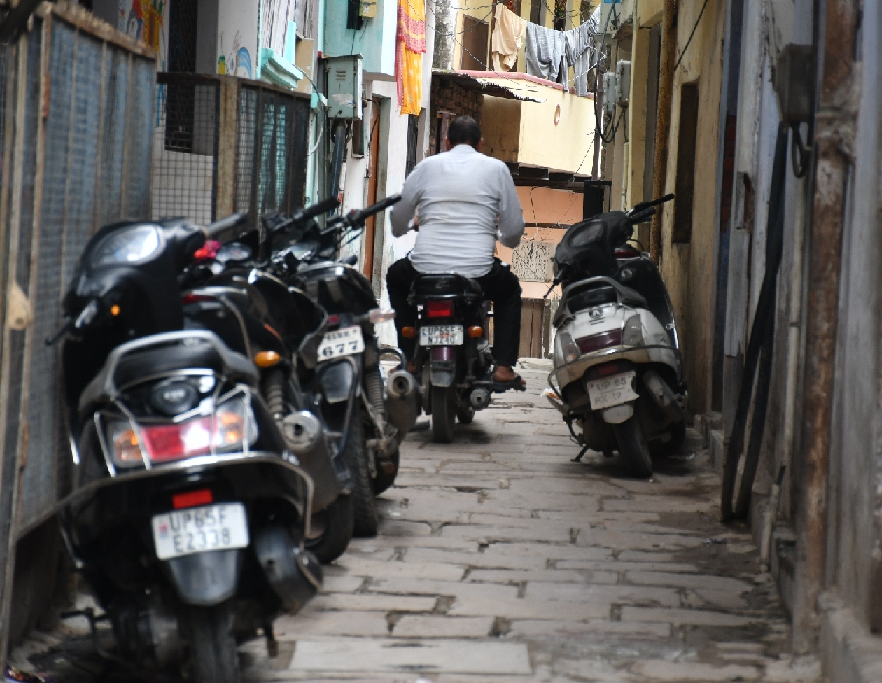 भदैनी की ओर से उनकी गली दूर से तो संरचनात्मक रूप से ठीक नजर आती है, लेकिन उसमें घुसते ही गोबर से सनी पत्थर और दुर्गंध से मानो सांस ही अटक जाती है। रही सही कसर दिन हो या रात मच्छर-मक्खी के झुंड से पूरी हो जाती है। इस गली में आवारा कुत्तों के झुंड से भी सामना होता है जिनसे बचने में कोई भी ठंड में भी पसीने-पसीने होता है।