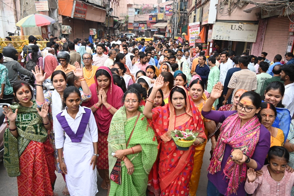 चौक पर स्थित चित्रा सिनेमा के पास से गुलशन कपूर के साथ भक्तों का एक जत्था हाथों में पूजन सामग्री माला-फूल, प्रसाद, नारियल, ध्वज लेकर माता की जयकार करते मां श्रृंगार गौरी मंदिर पहुंचा। ज्ञानवापी कूप से मां का अभिषेक रक, फूलों से मां का श्रृंगार किया, परिक्रमा की, नारियल चढ़ाया। विश्व कल्याण के साथ मां का भव्य मंदिर बने, ज्ञानवापी मुक्त हो, इसकी कामना की।