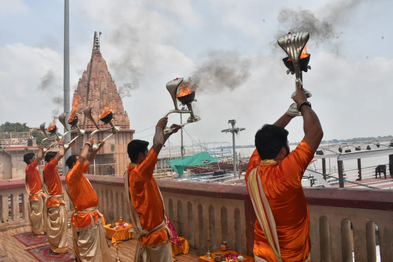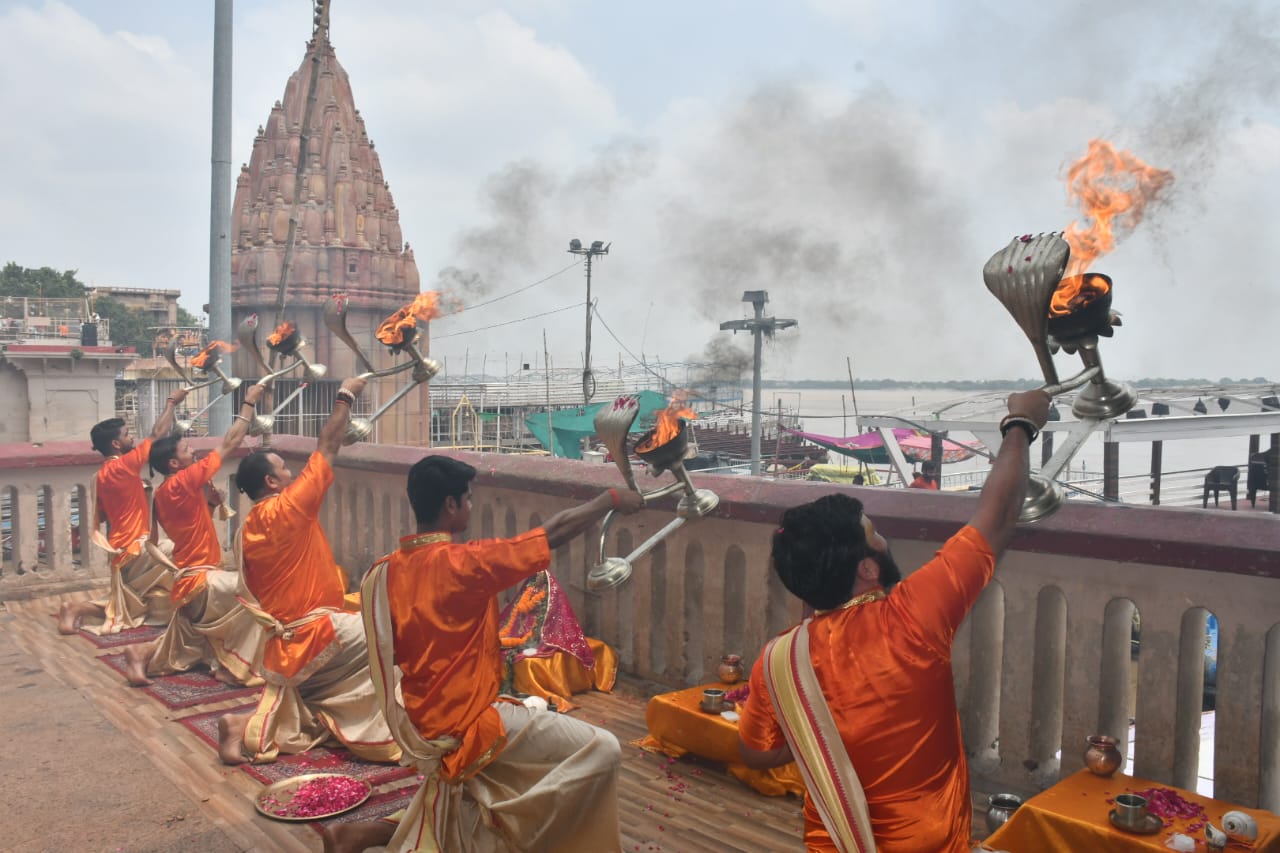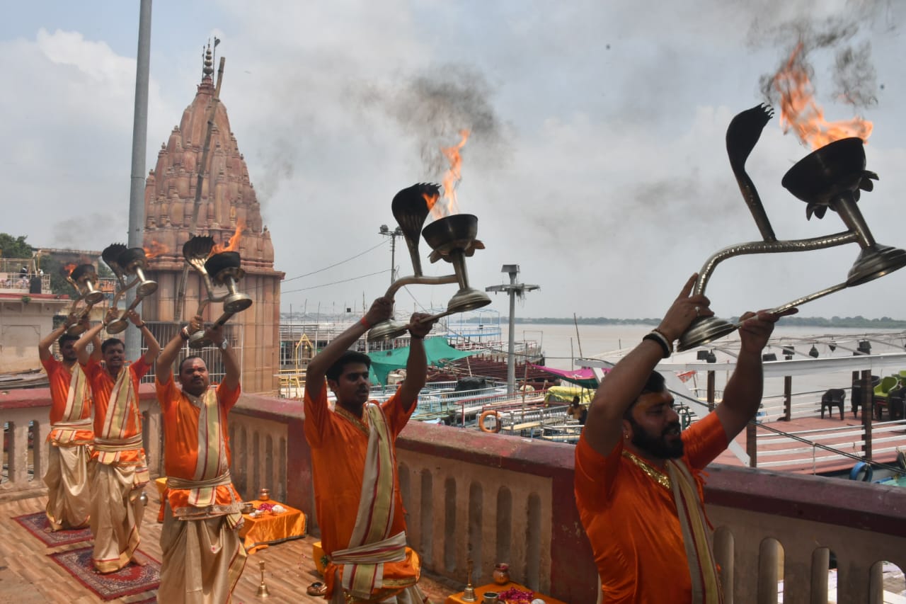 वाराणसी में भरी दोपहरिया हुई सांध्यकालीन गंगा आरती, सूतक काल में पसरा रहा सन्नाटा, देखें वीडियो...