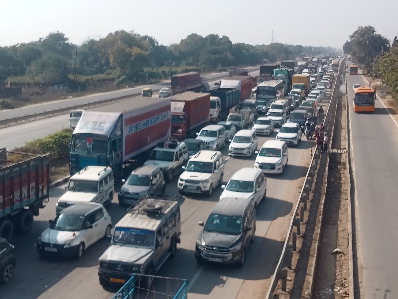 रखौना हाईवे पर लगी लंबी जाम। जागरण