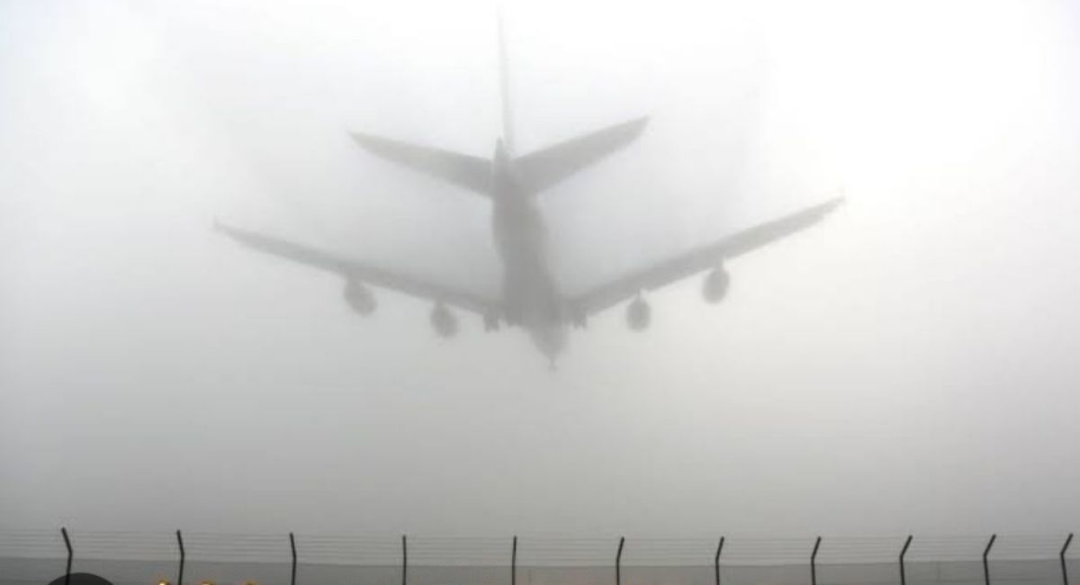 घने कोहरे के बीच लेंडिंग का प्रयास करता विमान। (फोटो इंटरनेट मीडिया)