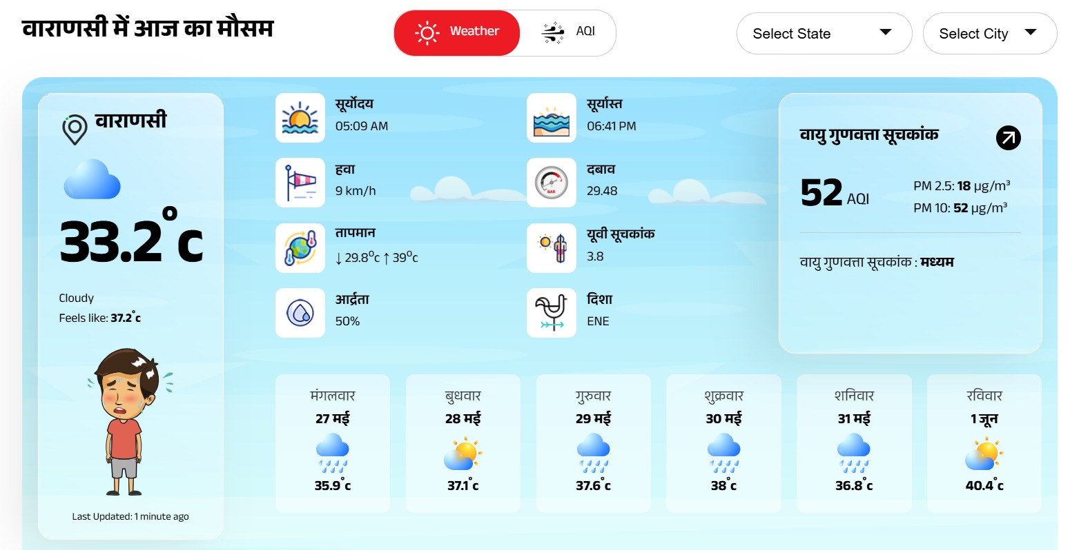 Varanasi Weather Update: आज से बारिश की संभावना, उमस भरी गर्मी ने छुड़ाया पसीना