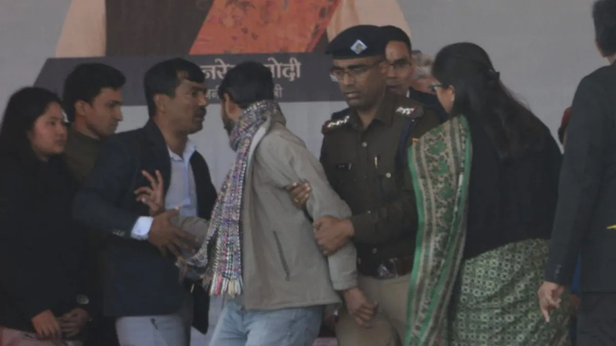 ताड़ीखेत में पूर्व विधायक महेश नेगी व अनिल शाही में तकरार बाद समर्थक को मंच से उतारते पुलिस व प्रशासनिक अधिकारी। जागरण