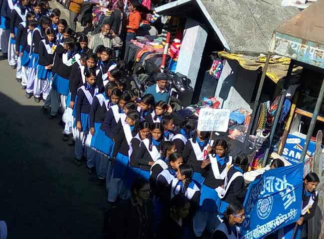 अल्मोड़ा में यहां महिला पालीटेक्नीक व एएनएम प्रशिक्षण केंद्र की छात्राओं ने रैली निकाली। सीएमओ ऑफिस से मुख्य सडक से होते हुए एडम्स इंटर कालेज पहुंचकर रैली का समापन किया गया।