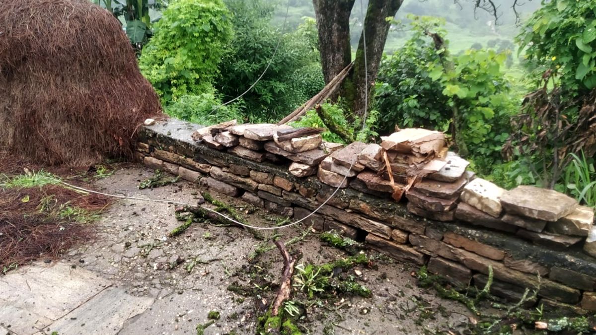 बीते रविवार की रात नौ बजे से वर्षा जारी है। बमराड़ी निवाासी चंदन सिह पुत्र डुंगर सिंह का मकान क्षतिग्रस्त हो गया है। वह परिवार के साथ अन्यत्र शिफ्ट हो गए हैं। ओखलीसिरौद निवासी हंसी देवी पत्नी दयाकृष्ण, बौड़ी निवासी जय राम पुत्र मोती रामबूंगा निवासी रतन राम पुत्र दीवान राम, ग्वाड़पजेणा निवासी मोहन राम पुत्र देव राम का मकान भी क्षतिग्रस्त हो गया है। जबकि ग्वाड़पजेणा निवासी सुंदर राम पुत्र रतन राम और भटखोला निवासी महेश राम पुत्र गौरी राम की गौशाला ध्वस्त हो गई है।