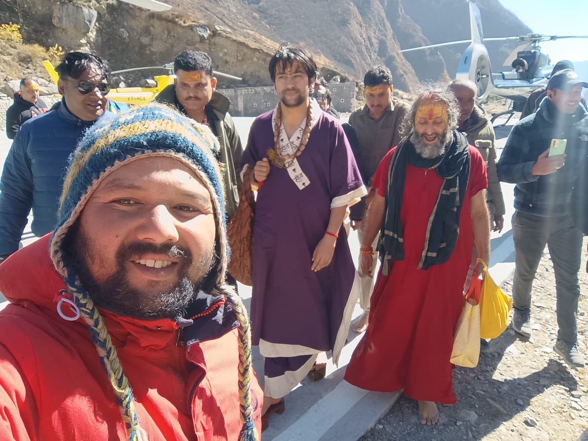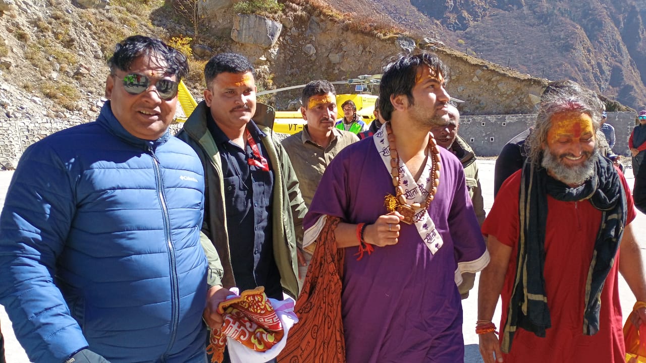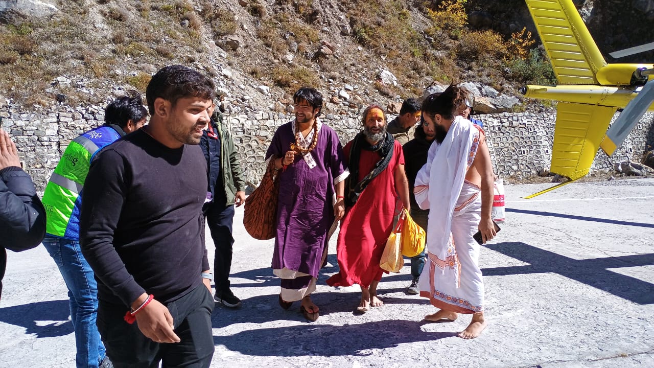 हेलीकॉप्टर से पंडित धीरेंद्र कृष्ण शास्त्री बद्रीनाथ पहुंचे।