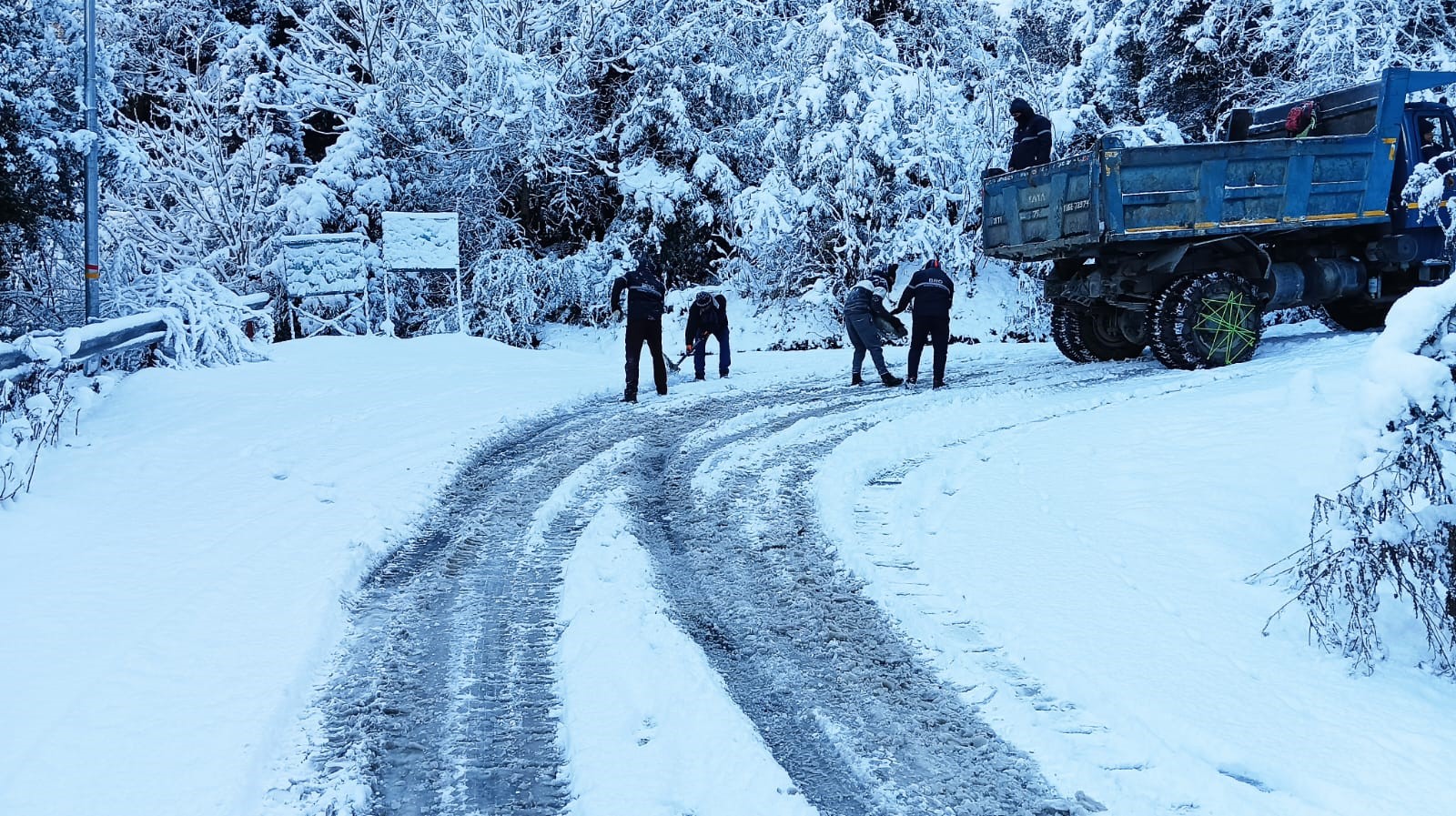 सड़क से बर्फ हटाने का काम शुरू