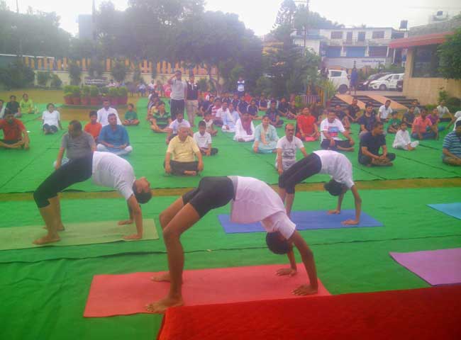 शिक्षण संस्थानों में भी इस मौके पर आयोजन किए गए। आईएमएस यूनिसन विवि में कुलाधिपति डॉ. एमपी जैन और कुलपति डॉ. राजेंद्र कुमार पांडेय के साथ संस्थान के तमाम अधिकारियों, कर्मचारियों और छात्र-छात्राओं ने योग क्रियाएं की। ग्राफिक एरा विवि में योग विशेषज्ञ पीके महर्षि की देख-रेख में कुलाधिपति डॉ. आरसी जोशी और कुलपति डॉ. वीके तिवारी के साथ शिक्षकों और छात्र-छात्राओं ने योगाभ्यास किया।