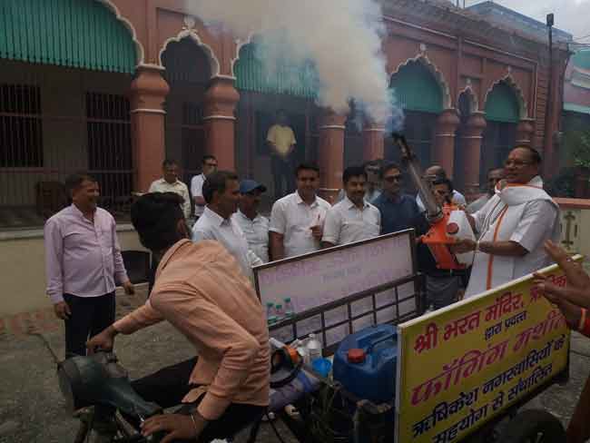 ऋषिकेश नगर में डेंगू के बढ़ते प्रकोप को देखते हुए श्री भरत मंदिर ऋषिकेश ने नगर में कीटनाशक के छिड़काव व फागिंग के लिए एक फागिंग मशीन प्रदान की है। मंदिर समिति सक्षम नागरिकों की मदद व स्वयं के व्यय पर इस फागिंग मशीन का संचालन करेगी।