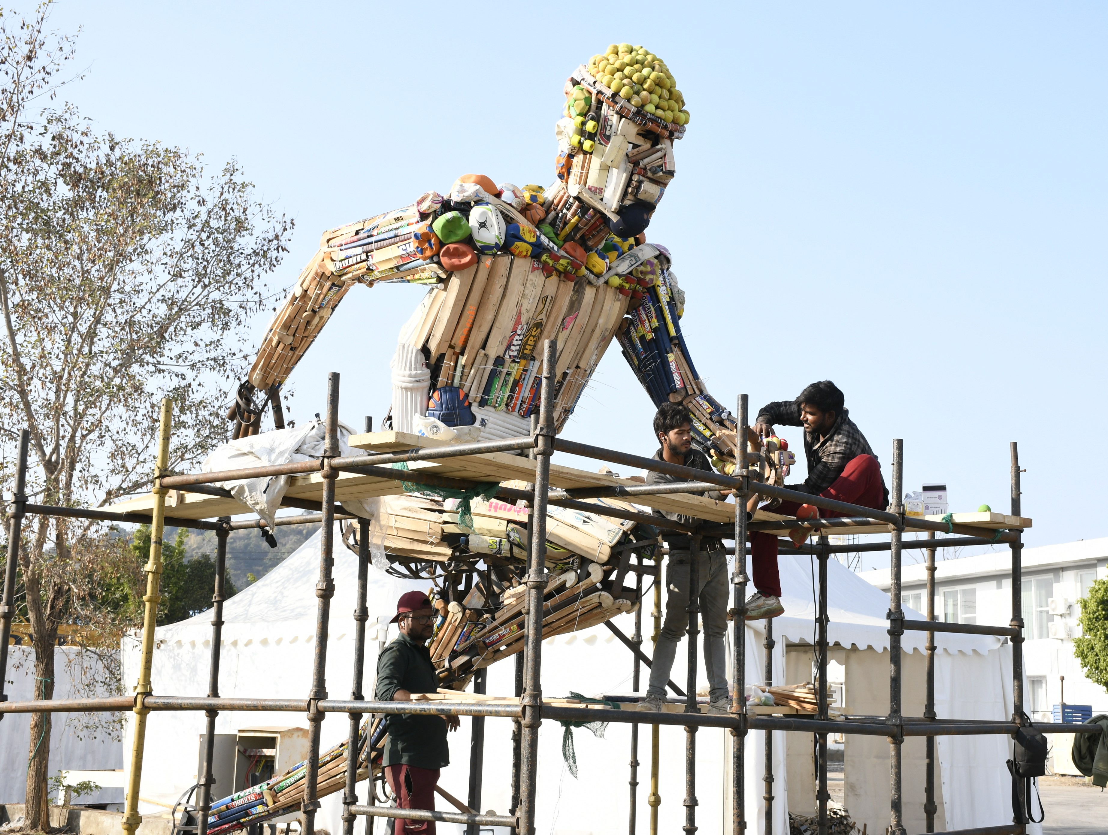 दौड़ लगाओ और फिट रहो : राष्ट्रीय खेलों के उद्घाटन समारोह को लेकर तैयारिंयां जोरों पर हैं। देहरादून के रायपुर में महाराणा प्रताप स्पोर्ट्स कालेज में दीपाली डिजाइंस की ओर से वेस्ट मेट्रेरियल से एथलीट की प्रतिमा तैयार की जा रही है। इसे रनिंग मैन नाम दिया गया है और इसके निर्माण में निष्प्रायोज्य टेनिस गेंद, फुटबाल, क्रिकेट बैट-बाल, स्केटिंग, क्रिकेट पैड, ग्लब्ज, हाकी आदि खेल समाग्रियों को लगाया गया। यह आकृति इन दिनों लोगों के आकर्षण का केंद्र बन रही है।-अनिल डोगरा।