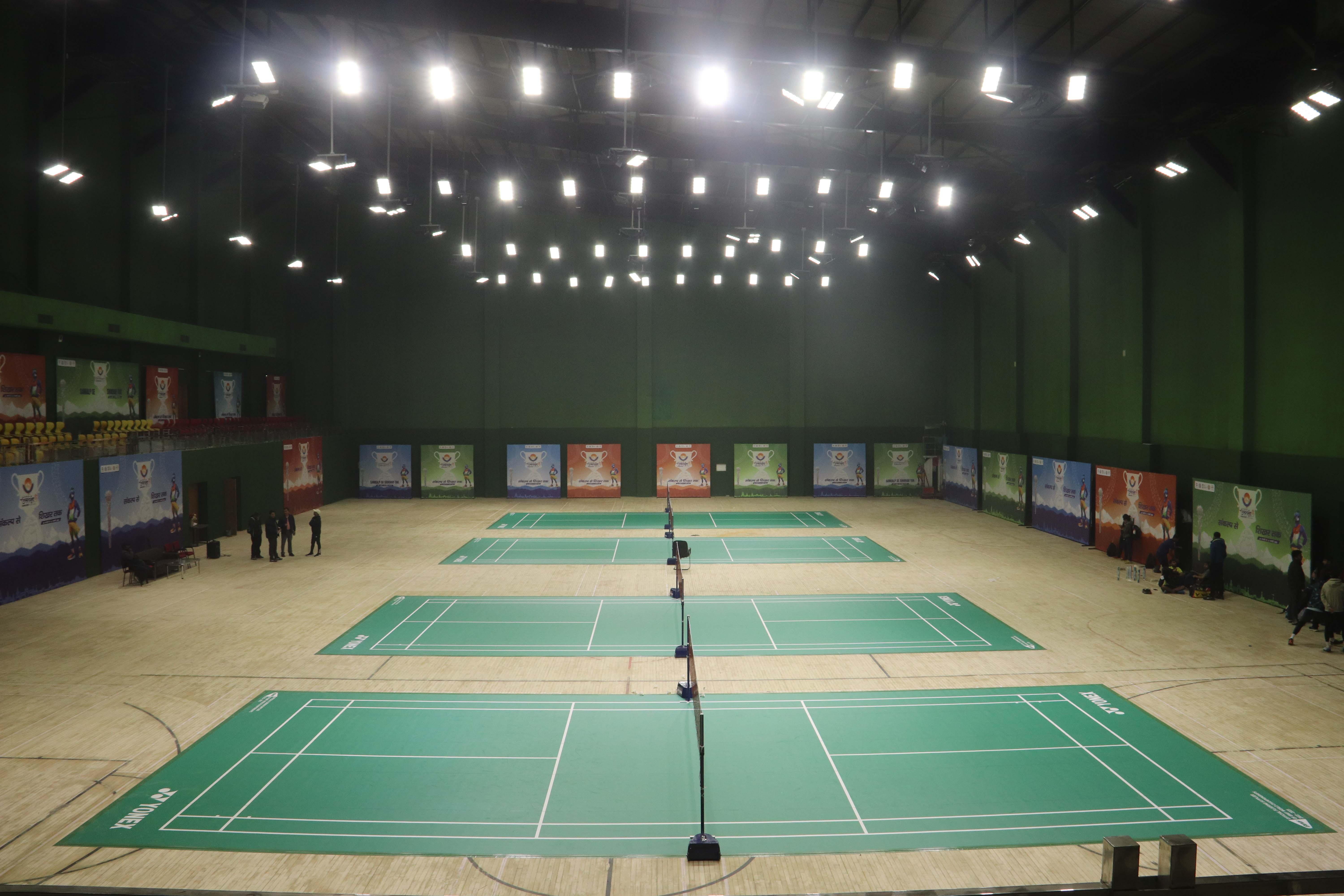 उत्तराखंड में होने वाले राष्ट्रीय खेलों के लिए तैयार बैडमिंटन हाल। राजेश बड़थ्वाल