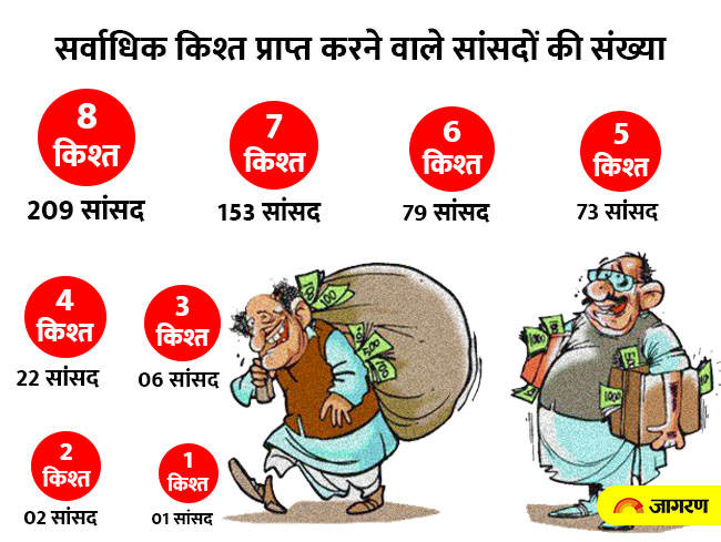 पिछले वर्षों की निधि की भी बात करें तो सिर्फ 209 सांसदों में 10 में से आठ किश्ते हीं मिल पाई हैं। यानी इन सांसदों की भी पिछले वर्षों की दो किश्त अभी बाकी है। आरटीआइ कार्यकर्ता व अधिवक्ता नदीमउद्दीन की ओर से आरटीआइ में मांगी गई जानकारी में यह बात निकलकर समाने आई।