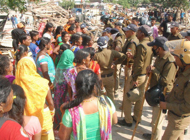 ऋषिकेश में विरोध के बीच प्रशासन ने चंद्रभागा बस्ती उजाड़ी