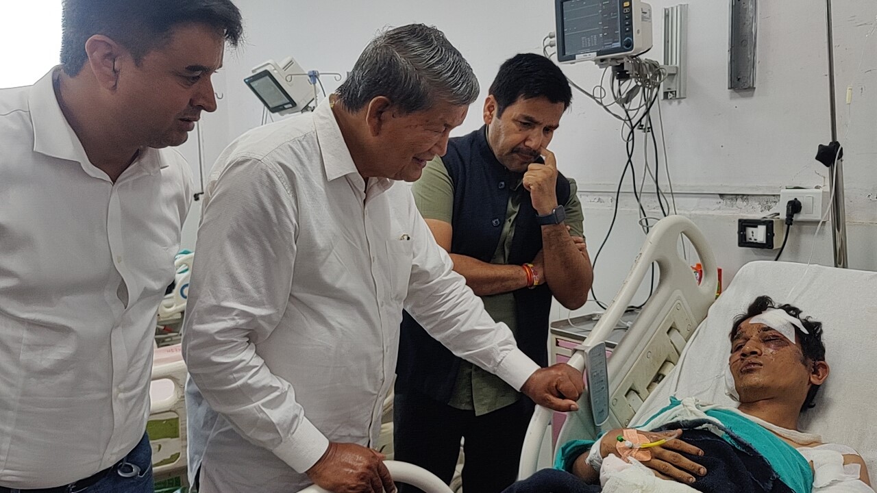 एम्स पहुंचकर बस दुर्घटना में घायल हुए यात्रियों का हाल जानते पूर्व मुख्यमंत्री हरीश रावत। जागरण
