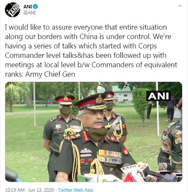 चीन के साथ हमारी सीमाओं पर स्थिति पूरी नियंत्रण में : जनरल एमएम नरवणे