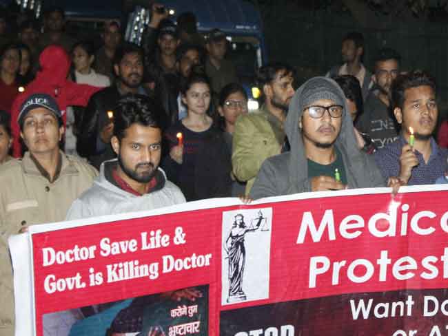 निजी कॉलेजों के खिलाफ आंदोलित आयुष छात्रों ने कैंडल मार्च निकाला। उन्होंने कहा कि यह कैंडल मार्च सरकार को रोशनी दिखाने के लिए है।
