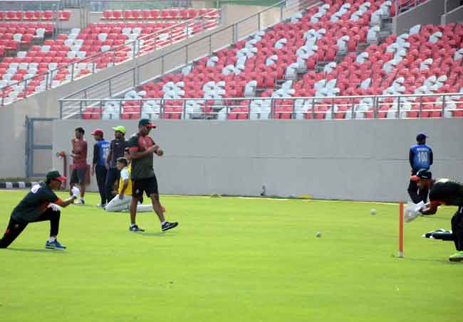 तीन जून से अफगानिस्तान के साथ टी-20 मैचों की श्रृंखला में विपक्षी टीम को टक्कर देने को बांग्लादेश की टीम ने अभ्यास शुरू कर दिया। टीम ने तीन घंटे तक स्टेडियम में पसीना बहाया।