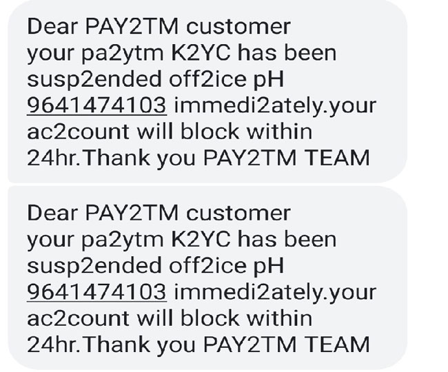आजकल साइबर ठगों ने लोगों की खून-पसीने की कमाई लूटने का नया तरीका ईजाद कर लिया है। साइबर ठग इन दिनों पेटीएम का प्रयोग करने वाले लोगों को न सिर्फ एसएमएस से यह चेतावनी दे रहे हैं कि आपकी केवाईसी सस्पेंड कर दी है, बल्कि यह भी कह रहे हैं कि पूरा अकाउंट ही 24 घंटे में ब्लॉक हो जाएगा। यह संदेश पेटीएम टीम की ओर से जारी करना दिखाया जा रहा है और सहायता के लिए एक मोबाइल नंबर भी एसएमएस में दिया जा रहा है।