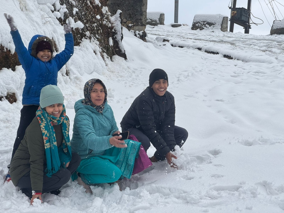 स्नोफॉल का मजा लेते दिखे पर्यटक।