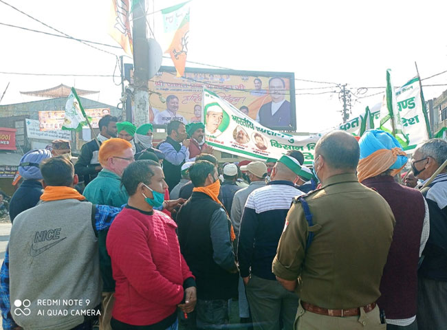 आशारोड़ी चेकपोस्ट पर भारतीय किसान यूनियन (तोमर) का प्रदर्शन