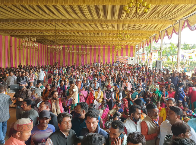 भाजपा कार्यकर्ता संवाद सम्मेलन में पहुंचे प्रदेश अध्यक्ष, कोरोना के नियम हुए तार-तार; लगा लंबा जाम