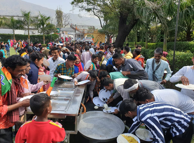 ऋषिकेश-हरिद्वार रोड पर स्थित कर्यक्रम स्थल में आयोजित कार्यकर्ता संवाद सम्मेलन में कार्यकर्ताओं का सब्र टूट पड़ा। मंच से प्रदेश महामंत्री कुलदीप कुमार का संबोधन के भूख से बेहाल कार्यकर्ताओं ने किसी का इंतजार नहीं किया और प्लेट लेकर सीधे दाल चावल के पतीले पर टूट पड़े।