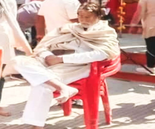 फुर्सत के क्षणों में सफेद कुर्ता- पाजामा पहने अमिताभ कुर्सी पर बैठ आराम करते नजर आए। उनकी लंबाई के मुताबिक कुर्सी की ऊंचाई कम थी। जिस कारण उनके लिए एक के ऊपर एक चार कुर्सी लगाई गई और कुर्सी को ऊंचाई दी गई। जिसके बाद अमिताभ इस पर आराम से बैठ पाए। समीप स्थित स्वर्गाश्रम ट्रस्ट के गेस्ट हाउस में इन सब के लिए दोपहर के भोजन की व्यवस्था की गई थी।