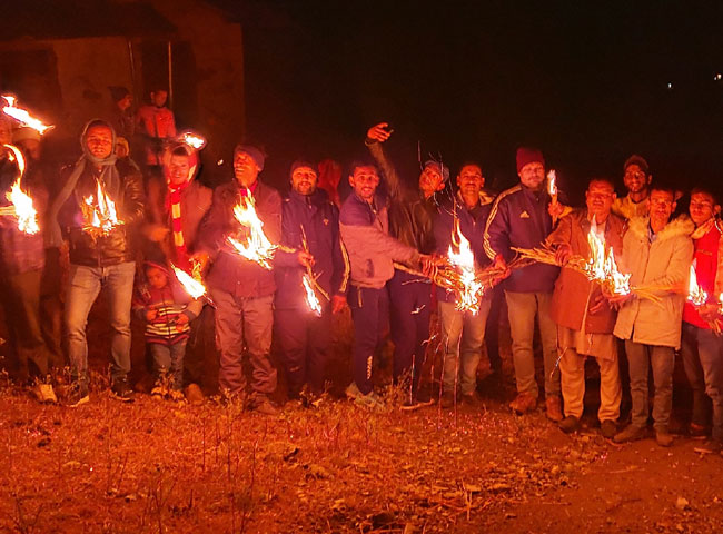 जलती मशालें एक दूसरे पर फेंक कर मनाया जश्न
