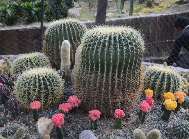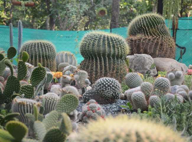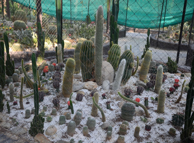 कैक्टस गार्डन में कैक्टस (कांटेदार) और सेंकुलेंट्स (बिना कांटों के मोटे पत्ते वाले) की 450 प्रजातियां अनुपम छटा बिखेर रही हैं। चिड़ियाघर के निदेशक पात्रो बताते हैं कि इन प्रजातियों को कलिंगपोंग (पश्चिम बंगाल), चंडीगढ़, पुणे, दिल्ली, कोलकाता से मंगाया गया, जबकि कुछ प्रजातियां राज्य के भीमताल समेत अन्य स्थानों से मंगाई गईं। गार्डन में लगाई गईं कैक्टस की प्रजातियों में काफी संख्या में मैक्सिको और सहारा मरुस्थल में पाई जाने वाली प्रजातियां हैं। कैक्टस में कांटों के बीच खिलने वाले फूल हर किसी का ध्यान अपनी ओर खींचते हैं। साथ ही ये संदेश भी देते हैं कि परिस्थितियां चाहे कैसी भी हों, हर हाल में मुस्कुराना चाहिए।