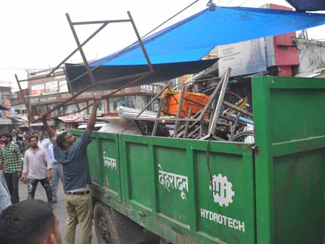 नगर निगम ने मुख्य बाजारों में हटाया अतिक्रमण, व्यापारियों का हंगामा Dehradun News