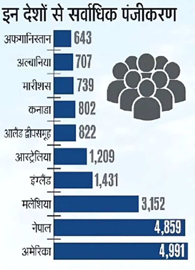 बाहरी 10 देशों से हुए सर्वाधिक पंजीकरण