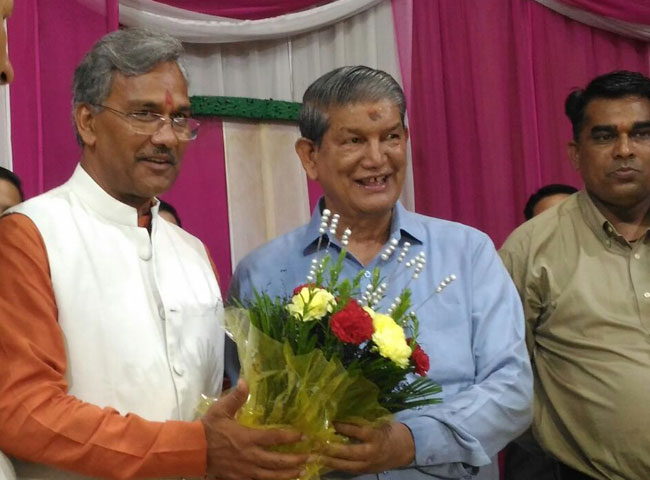 पूर्व सीएम हरीश रावत की 'आम' दावत में पहुंचे सीएम त्रिवेंद्र रावत