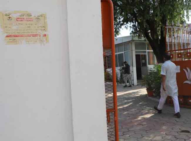 भाजपा मुख्यालय पर भी चस्पा रहा क्वारंटाइन का पर्चा