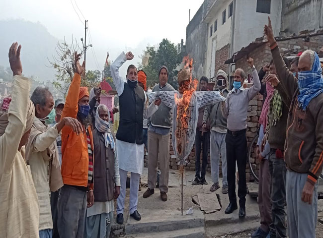 प्रदर्शन में रमेश उनियाल, दिनेश व्यास, राजेंद्र राणा, यशपाल थलवाल, बलवंत चौहान, दिनेश सकलानी, दिनेश भट्ट, राम सिंह सजवाण, संतोष पैन्यूली, अमित चौहान आदि शामिल हुए। वहीं, लक्ष्मण झूला मार्ग चंद्रभागा पुल के समीप कांग्रेस के पूर्व प्रदेश महामंत्री जयपाल सिंह जाटव के नेतृत्व में भी पार्टी कार्यकर्ताओं ने केंद्र और राज्य सरकार के खिलाफ आक्रोश जताया। प्रदर्शन में सुनील गोस्वामी, जतिन जाटव,विनय दुबे, अशोक विश्वकर्मा, अखिलेश राजभर, कुनकुन साहनी आदि शामिल हुए।